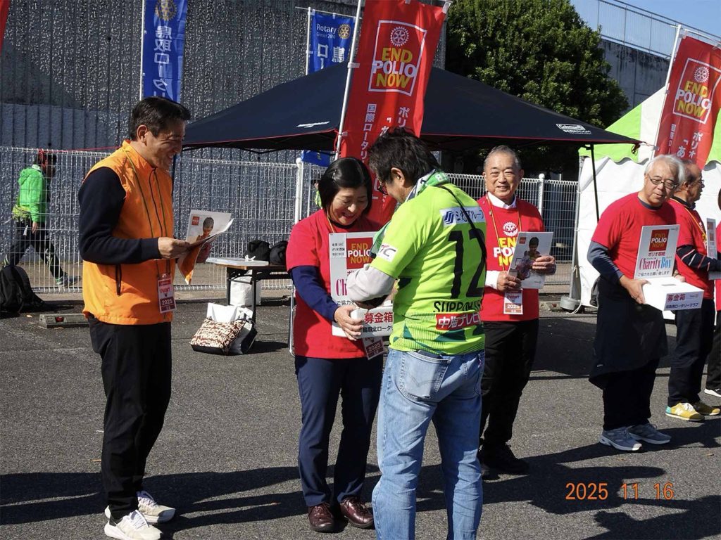 対戦相手のギラヴァンツ北九州を応援するサポーターも大勢来場され、県内外問わず多くの方々が募金に協力してくださいました。ご家族連れや学生の姿も多く、温かい支援の輪が広がる大変意義深い活動となりました。試合はガイナーレ鳥取が勝利し、会場は大きな盛り上がりとともに、募金活動も成功裏に終了しました。ご協力くださった皆さまに心より感謝申し上げます。今後も世界ポリオ根絶に向け、活動を継続してまいります。