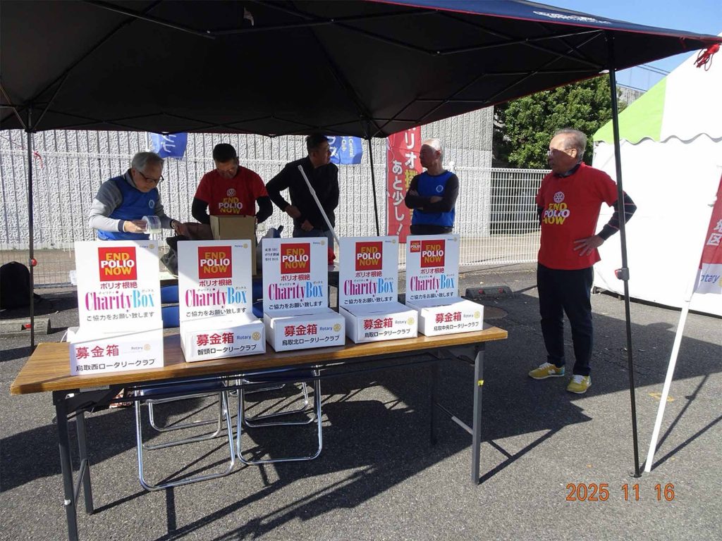 当日は鳥取北ロータリークラブほか、鳥取RC、鳥取中央RC、鳥取西RC、智頭RCの5ロータリークラブが参加し、会場入り口付近にブースを設置。