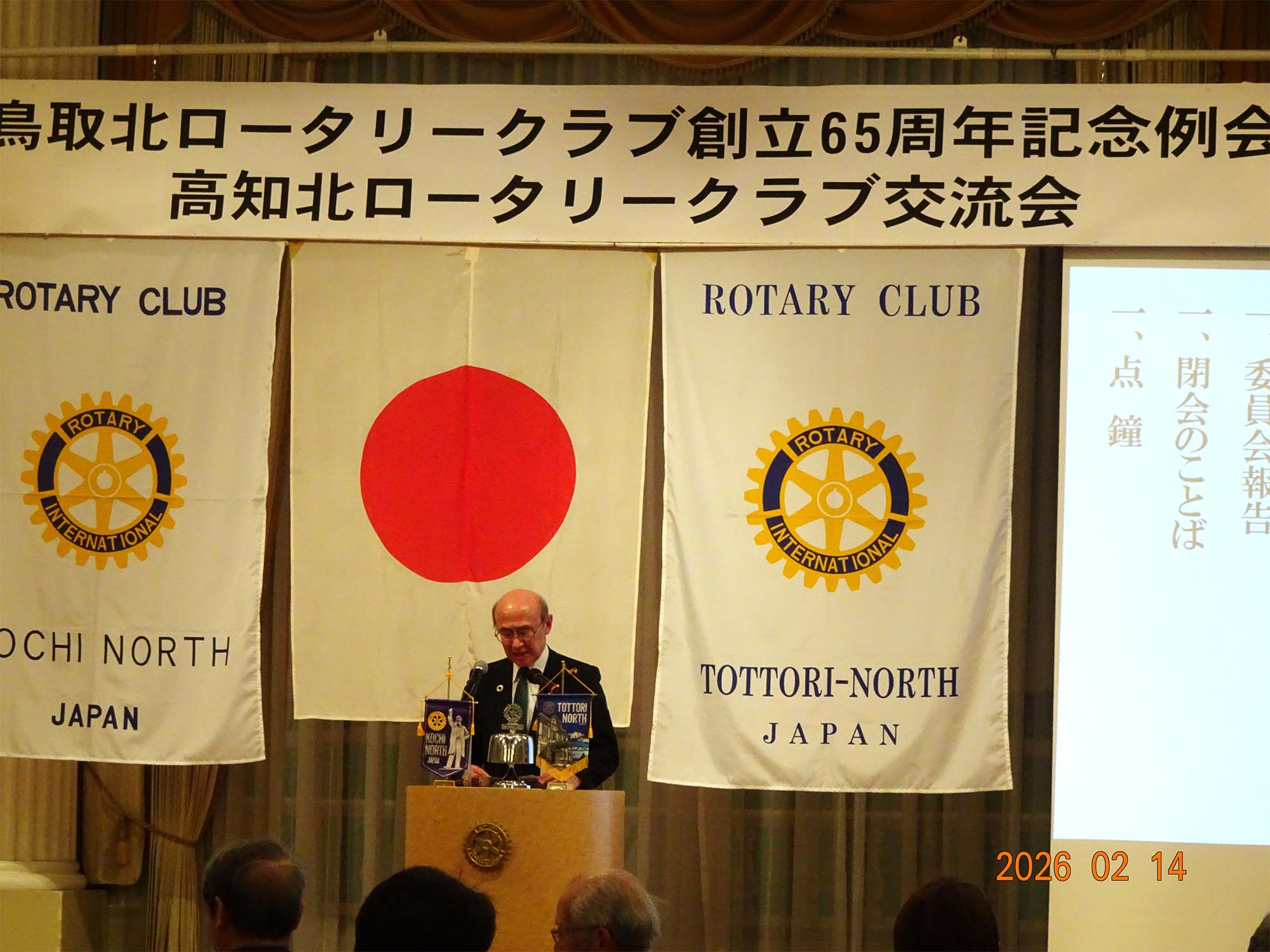 令和8年2月14日(土)ホテルモナーク鳥取にて、当クラブ創立65周年記念例会を開催しました。